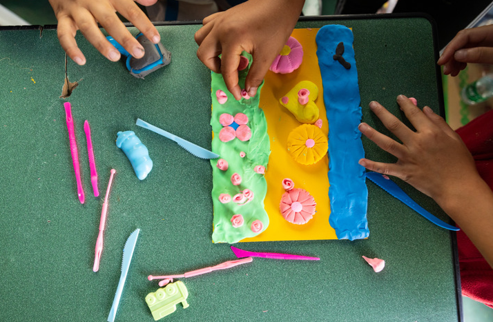 9月10日,在瀘定二中臨時(shí)安置點(diǎn)的“帳篷課堂”里,孩子們用橡皮泥制作創(chuàng)意“月餅”。新華社記者 沈伯韓 攝