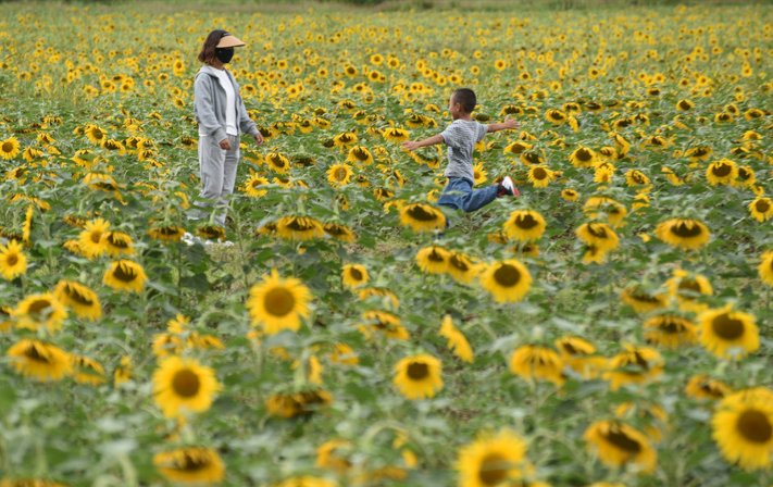 9月11日,游人在云南省麗江市古城區(qū)開(kāi)南街道的向日葵花海里游玩。新華社發(fā)(趙慶祖攝)