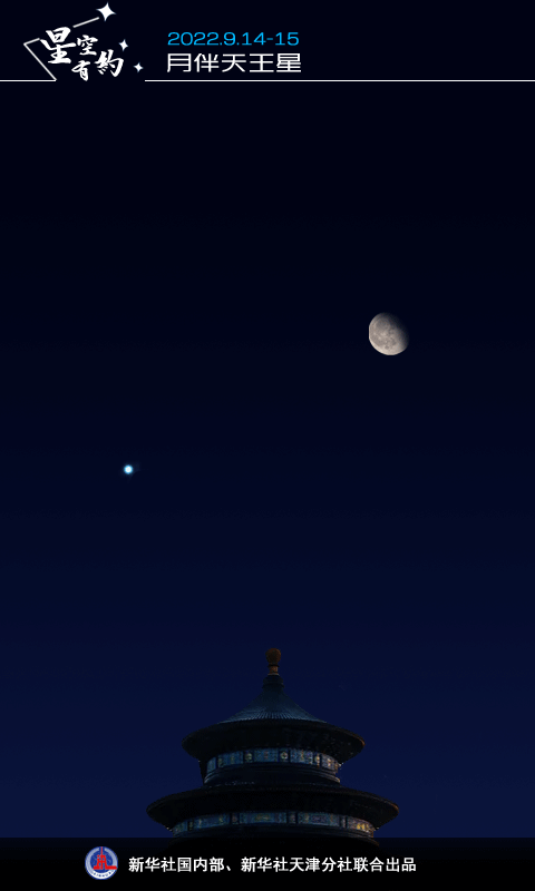 新華社天津9月13日電(記者周潤(rùn)健)天文預(yù)報(bào)顯示,9月15日,月球?qū)⑴c天王星“相遇”并“擦肩”而過,上演月掩天王星的現(xiàn)象。天文科普專家表示,我國(guó)雖然看不到“遮掩”的過程,但感興趣的公眾14日晚至15日晨卻可以看到極近的月伴天王星。