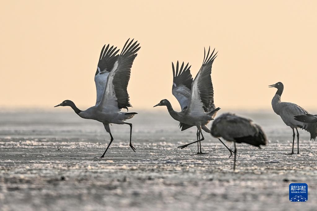 “只有人鳥共生,才能長遠(yuǎn)發(fā)展”,已成為眾多黑頸鶴保護(hù)地的共同理念。在甘肅尕海,周邊禁止采砂、退出采礦、禁牧休牧,湖泊告別三度干涸歷史,水域面積不斷擴(kuò)大,黑頸鶴回歸翱翔;在云南大包山,當(dāng)?shù)貙?shí)施棲息地生態(tài)修復(fù)項目,恢復(fù)濕地超過9000畝,為黑頸鶴預(yù)留更多棲息生態(tài)空間。