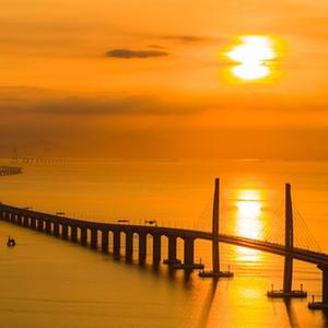 港珠澳大橋海上日出(2019年8月7日攝,無人機照片)。新華社發