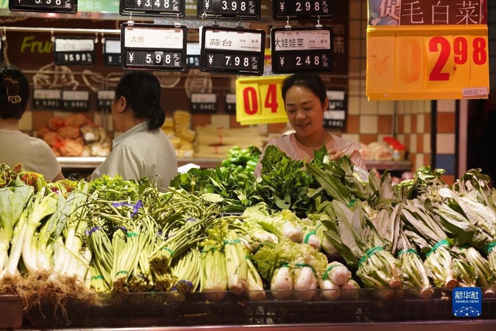 2022年7月15日,市民在湖南省懷化市通道侗族自治縣一家超市選購蔬菜。新華社發(fā)(吳三東 攝)
