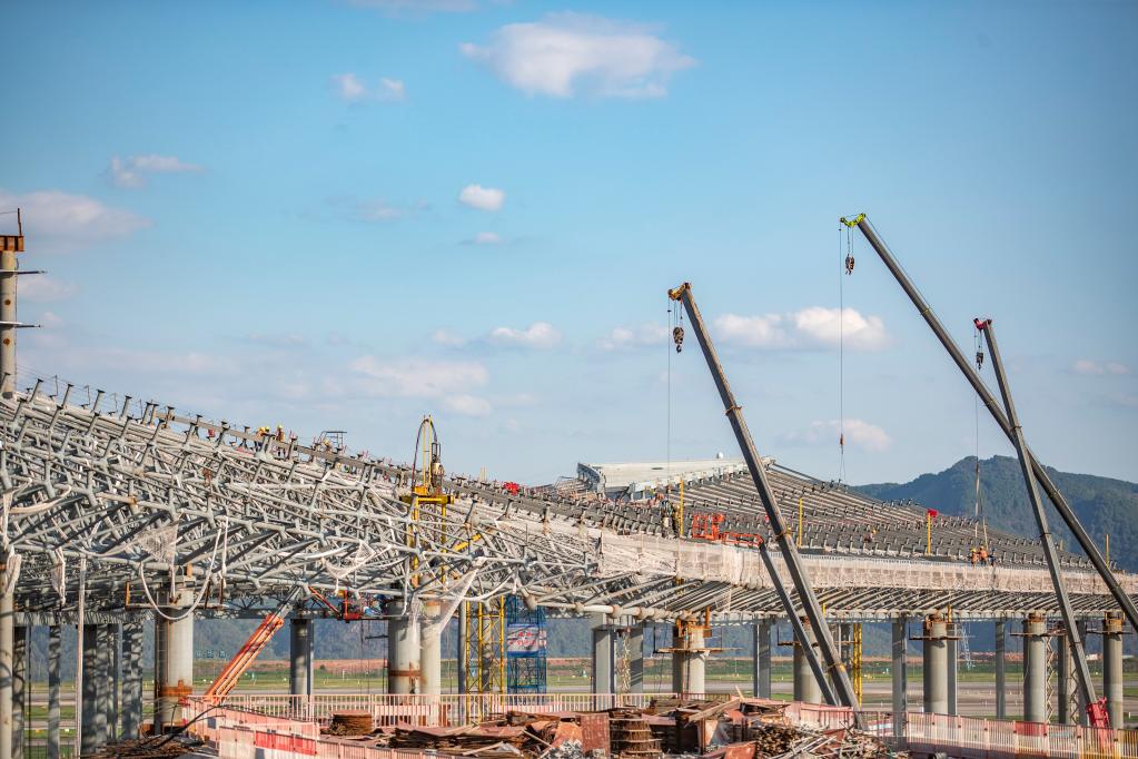 10月1日,在中建八局承建的重慶江北國際機場T3B航站樓施工現(xiàn)場,上千名建設者堅守崗位作業(yè)。新華社記者 黃偉 攝