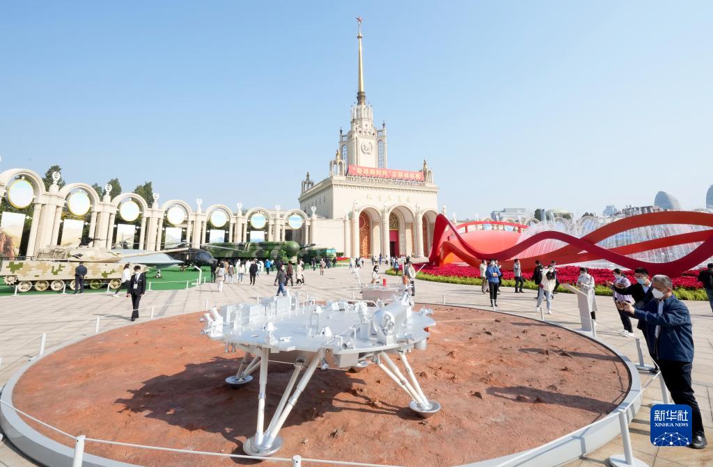 10月7日,觀眾在“奮進新時代”主題成就展上參觀天問一號著陸器模型。當日是國慶長假的最后一天,大批觀眾來到北京展覽館參觀“奮進新時代”主題成就展。新華社記者 王毓國 攝