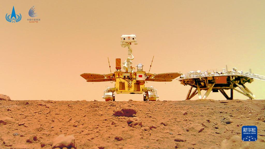 這是“著巡合影”圖。2021年6月11日,國家航天局在北京舉行天問一號探測器著陸火星首批科學(xué)影像圖揭幕儀式,公布了由祝融號火星車拍攝的著陸點(diǎn)全景、火星地形地貌、“中國印跡”和“著巡合影”等影像圖。首批科學(xué)影像圖的發(fā)布,標(biāo)志著我國首次火星探測任務(wù)取得圓滿成功。 新華社發(fā)(國家航天局供圖)