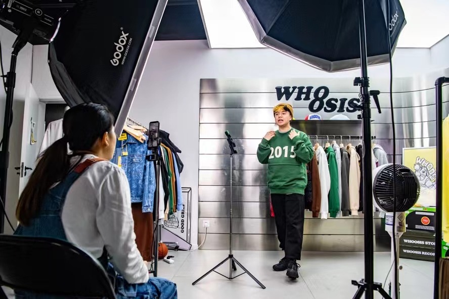一家服裝公司的員工正在直播。新華社記者唐奕 攝