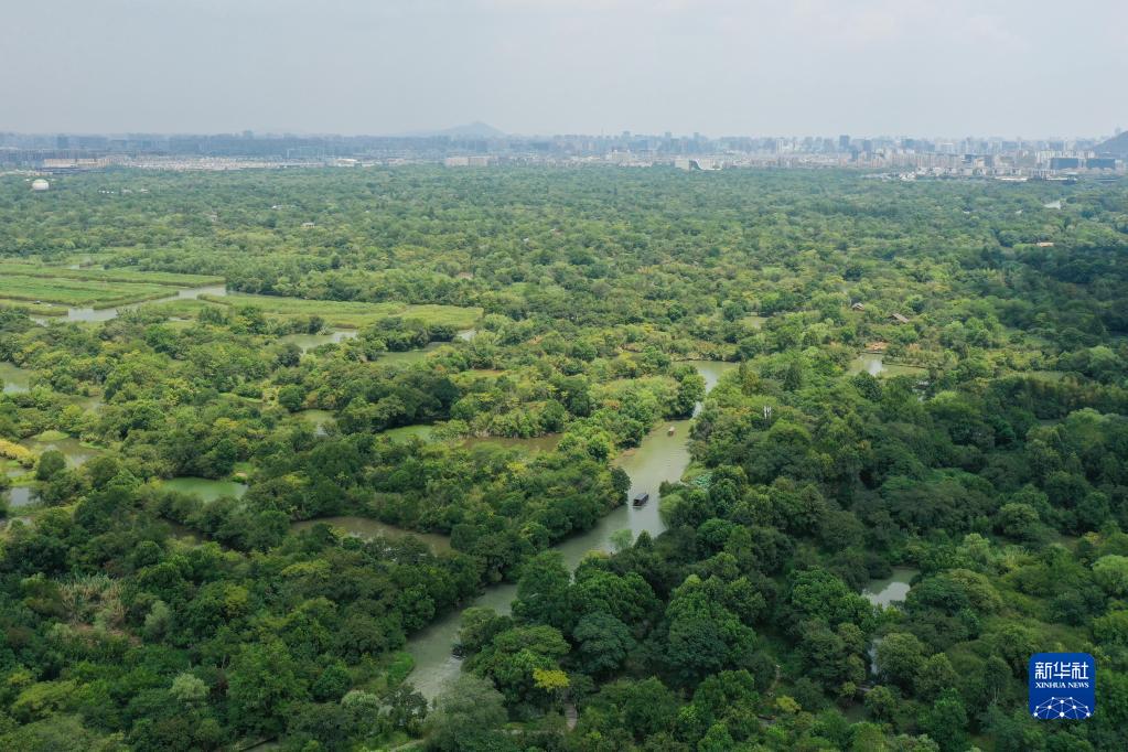 2020年8月22日拍攝的西溪國家濕地公園(無人機照片)。新華社記者 黃宗治 攝