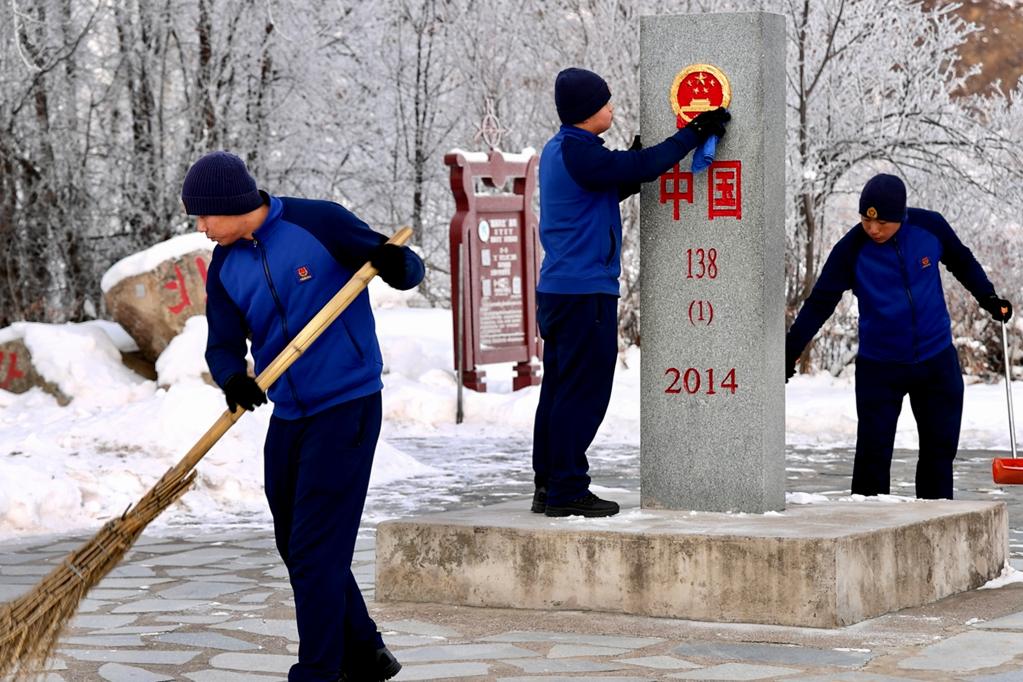 熟練而凝重地擦拭著界碑上的積雪,古誓言感慨道,5年來,這座138號界碑伴他們度過無數個清晨,“界碑見證我們風霜中的歷練,也堅定了我們駐扎‘極北’、守護百姓的信念。”