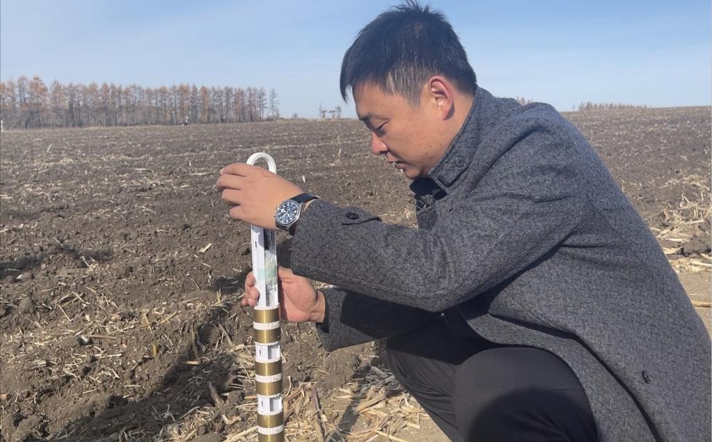 趙光農場有限公司農業科技服務中心主任李海成正在查看土壤墑情傳感器。(受訪者供圖)