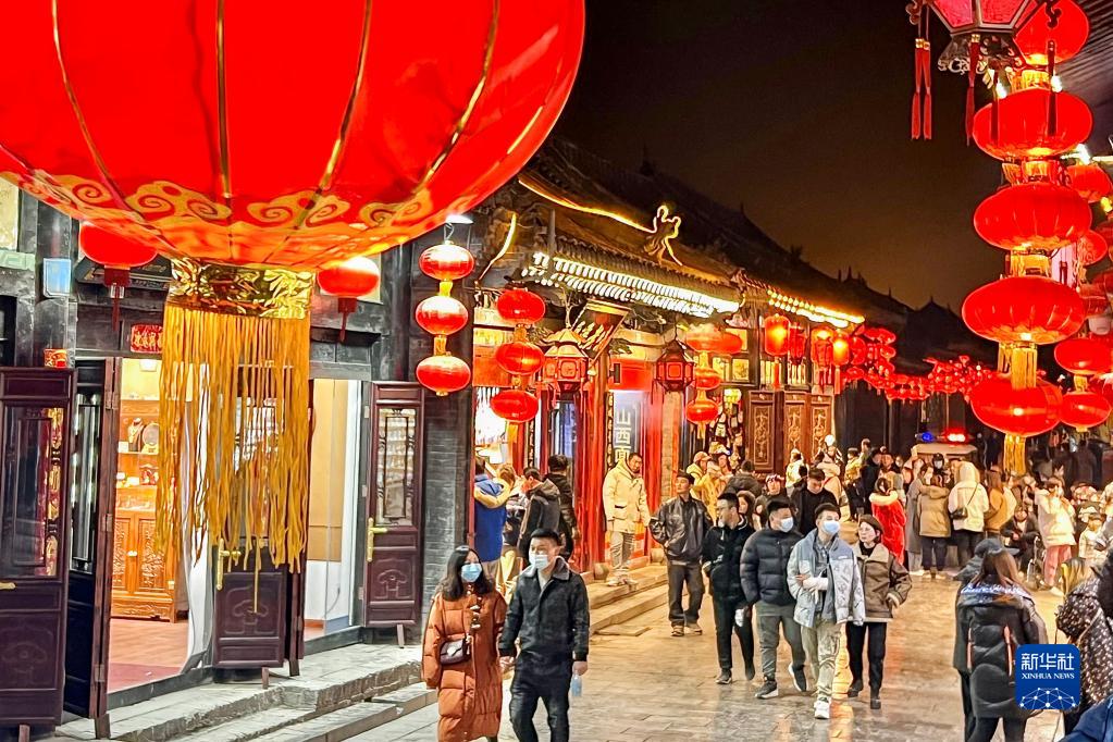 這是平遙古城內明清街夜景(2022年2月7日攝)。新華社發(梁生仁攝)