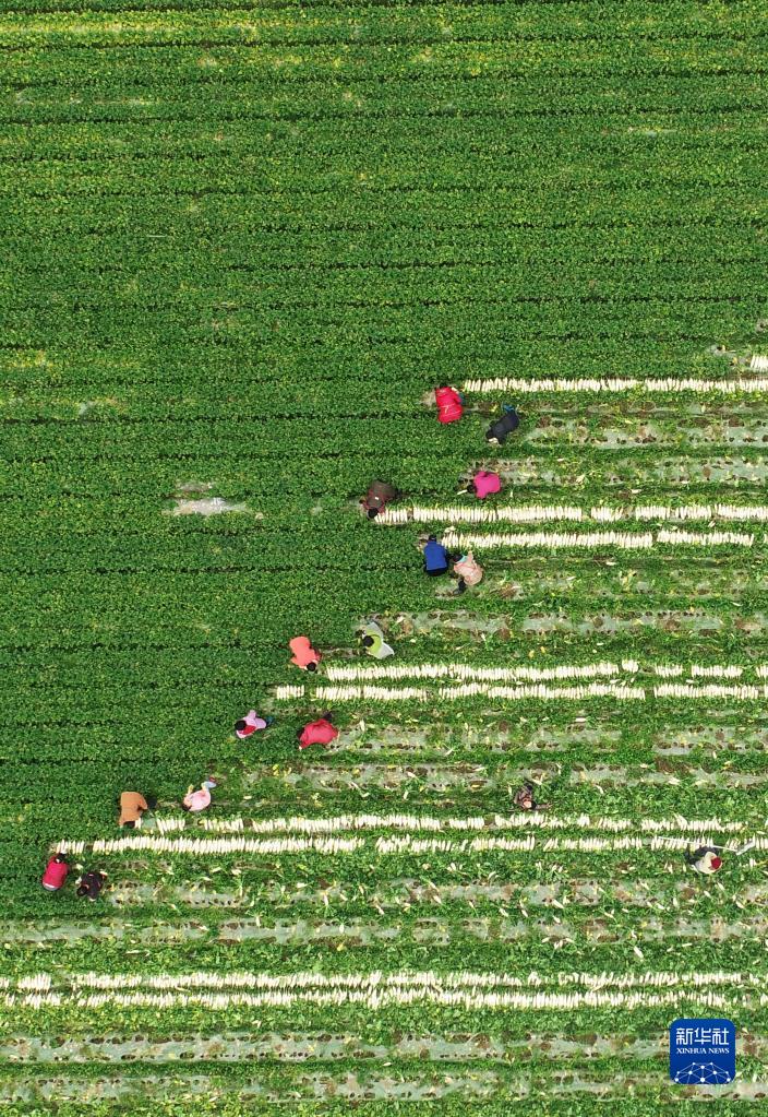 2月28日,在四川省南充市蓬安縣錦屏鎮中壩社區,村民在地里勞作(無人機照片)。新華社發(劉永紅 攝)