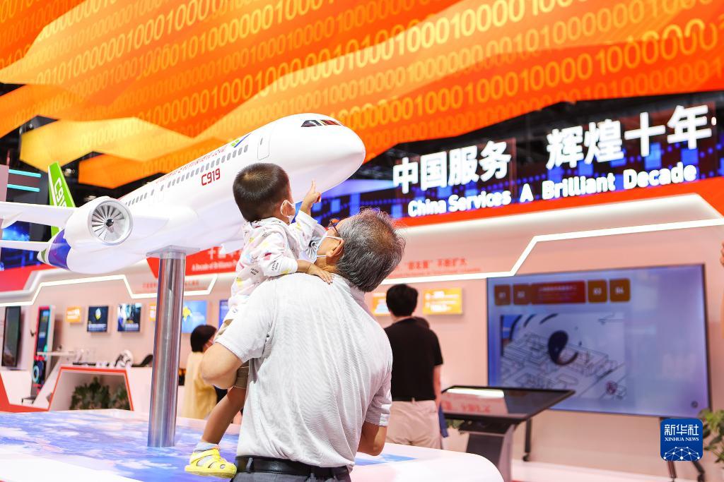 觀眾在服貿會國家會議中心參觀中國服務貿易成就展(2022年9月5日攝)。新華社記者 郝昭 攝