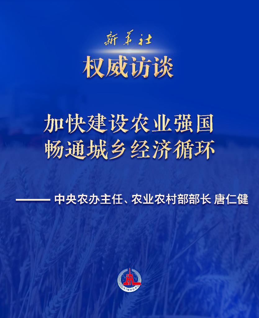 新華社北京1月6日電 題:加快建設農業強國 暢通城鄉經濟循環——訪中央農辦主任、農業農村部部長唐仁健