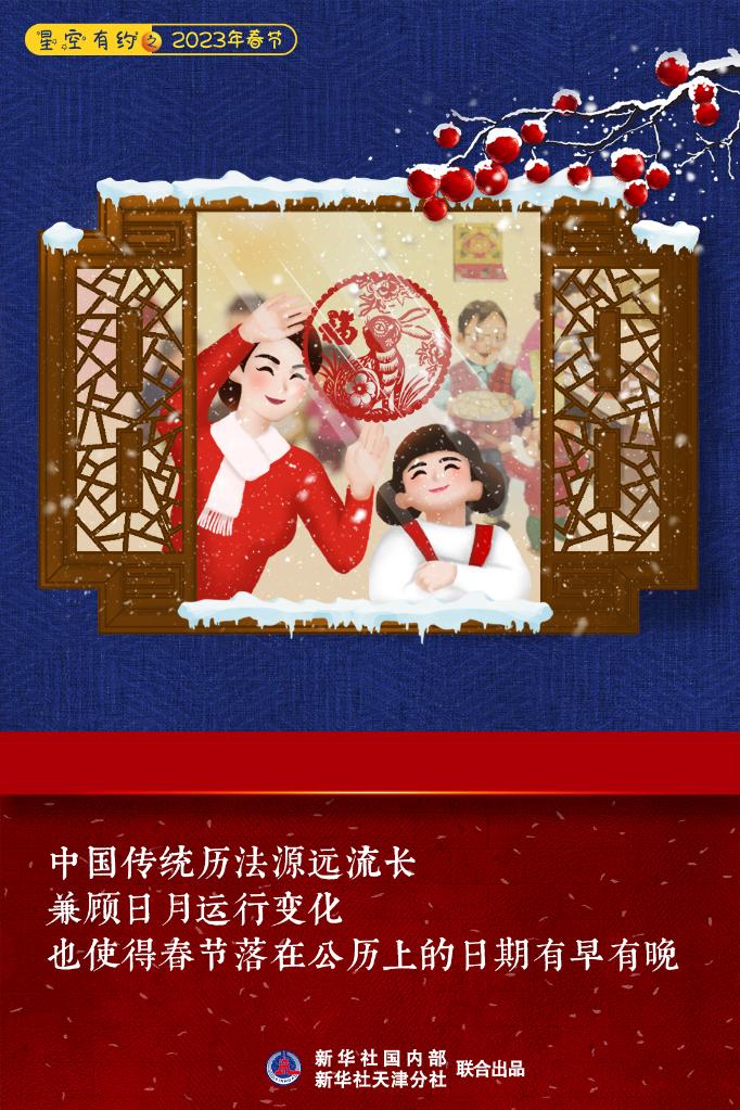 新華社天津1月10日電(記者周潤健)春節(jié)的腳步日益臨近,1月22日,我們將迎來2023年春節(jié)。天文科普專家介紹,2023年春節(jié)是21世紀這100年里的第二早春節(jié),比21世紀最早春節(jié)只晚了一天。