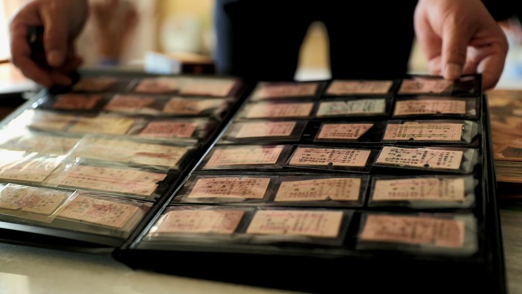 孫昆育展示收集到的火車票。新華社記者王安浩維 攝
