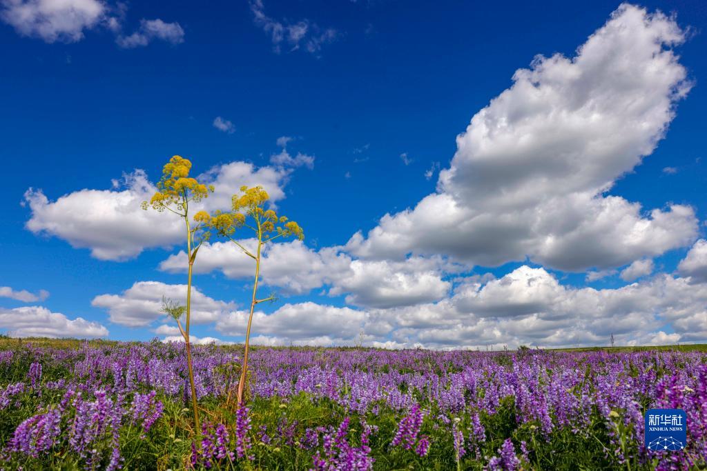 新疆裕民縣巴爾魯克山區夏牧場上的山花(2021年6月14日攝)?!霸C裆交ü潯笔切陆糜蔚囊淮笃放?。新華社記者 胡虎虎 攝