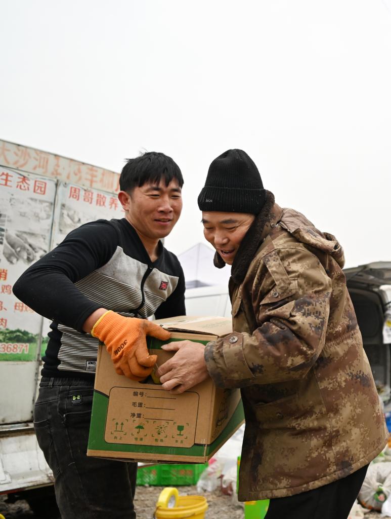 “出發咯!”周春軍一句干勁十足的吆喝,打破了冬日清晨的寒意。載著滿滿700多斤柴雞蛋,他與老婆王秀艷開上小貨車,加入了“追集”的大軍。