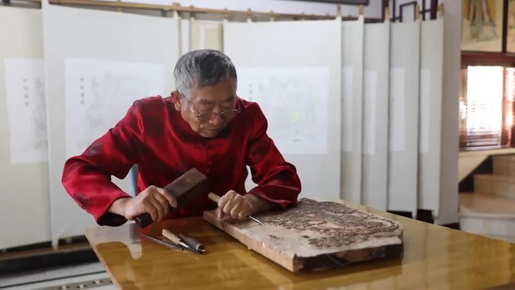 霍慶有家中收藏著一件趙州橋清代木版。三年前,為尋得這塊下落不明的古版,霍慶有突發心梗,經歷了兩次手術才轉危為安。最終兒子從陜西輾轉購得這塊木版。霍慶有還沒等身體痊愈,就一頭扎進古版的復繪工作中。