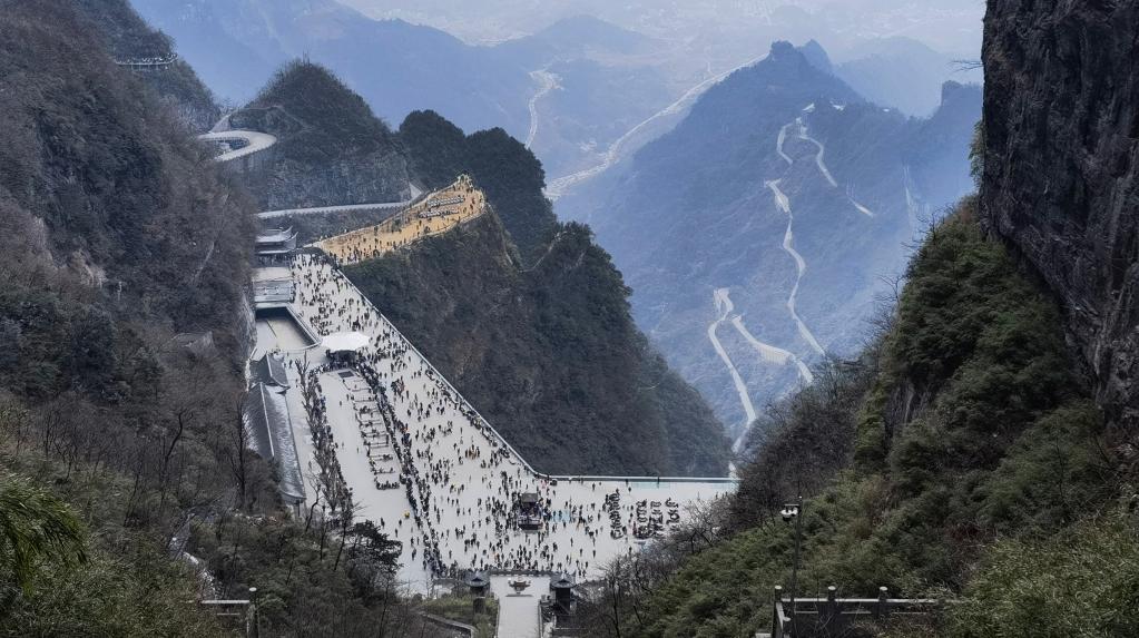 春節(jié)期間,各地推出相應(yīng)措施,保障文旅市場(chǎng)安全、有序。圖為在張家界天門(mén)山景區(qū)排隊(duì)的游客。新華社記者趙眾志 攝