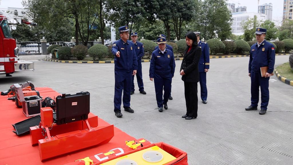 2023年2月14日,全國政協委員楊遠艷到來賓市消防救援支隊調研。新華社記者梁舜 攝