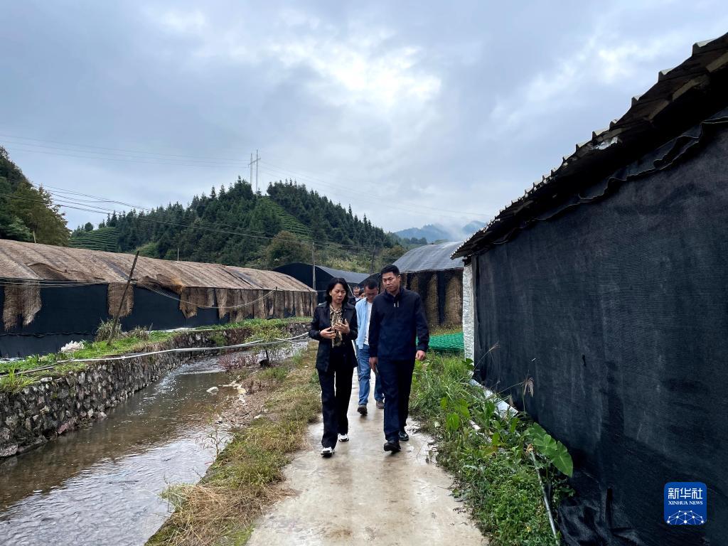 楊遠艷(左)在廣西金秀瑤族自治縣調研農業生產情況(2021年10月14日攝)。新華社發