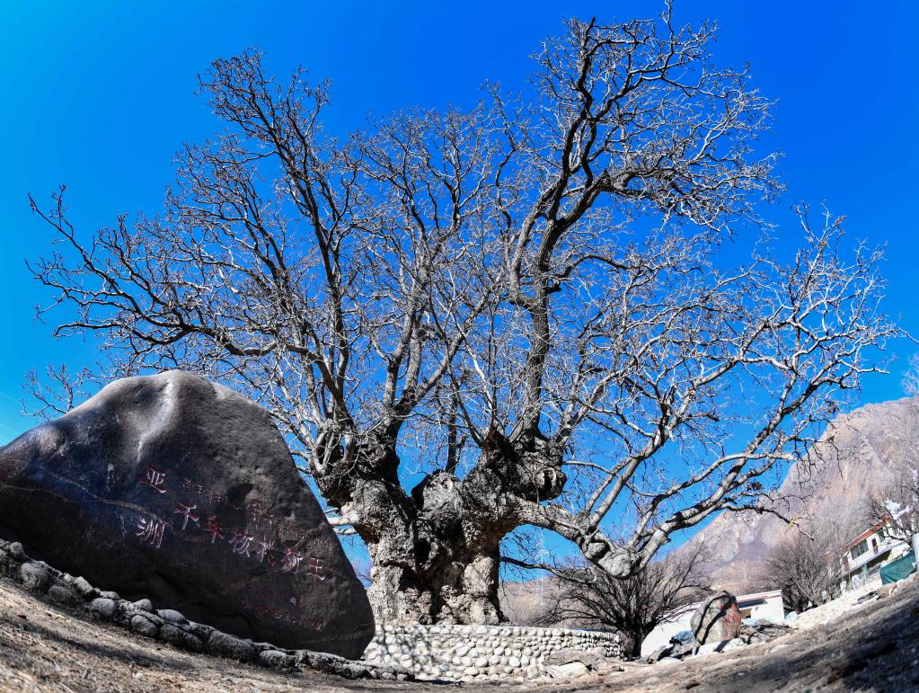 山南市加查縣拉崗村的千年核桃樹(2月1日攝)。新華社記者晉美多吉 攝