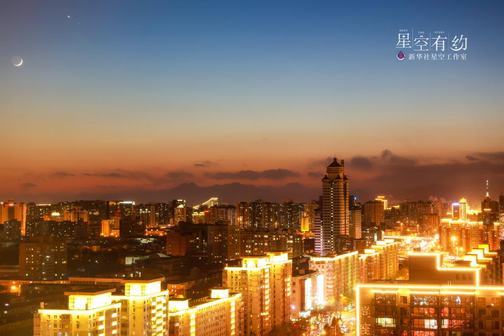由于金星總在太陽附近出現,所以每到農歷月末月初的日出日落時,經常會出現金星伴月的景觀,這也是很多天文和攝影愛好者追逐的目標。2月的金星仍為“昏星”,于日落后出現在西方天空,所以月亮只能在傍晚與它“邂逅”。