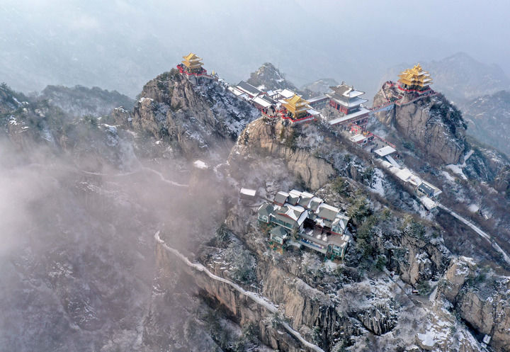 這是2月23日拍攝的洛陽市欒川縣老君山風景區(無人機照片)。新華社記者 李安 攝