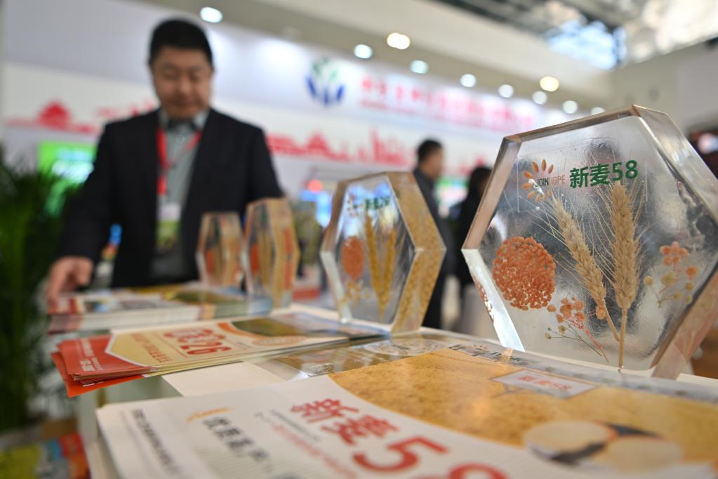 這是在展會上拍攝的小麥種子展示品。新華社記者 李然 攝