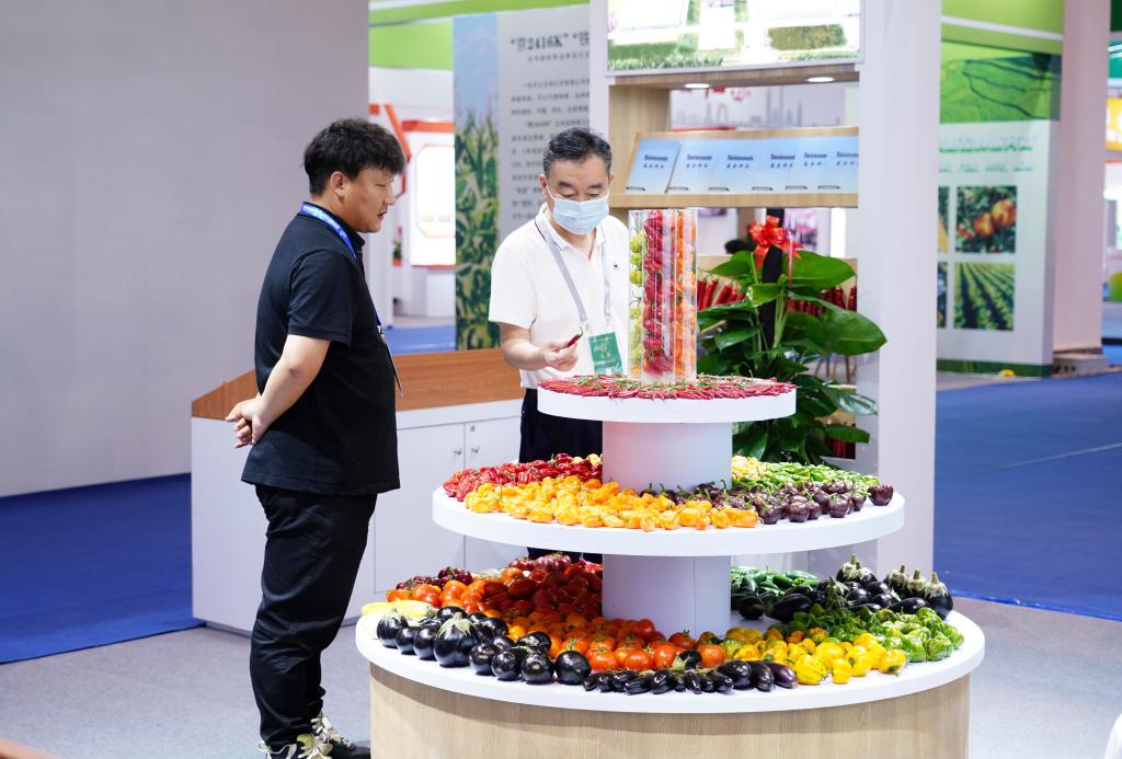 2023中國(guó)種子大會(huì)暨南繁硅谷論壇在海南三亞舉行。4月1日,與會(huì)者在參觀論壇展覽。新華社記者 樊雨晴 攝
