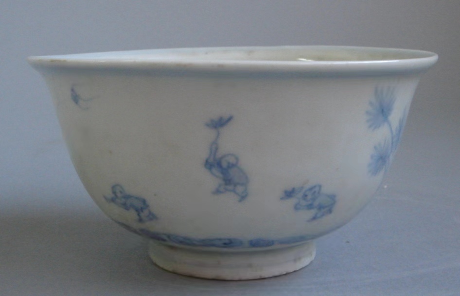 圖為淡描青花嬰戲圖碗