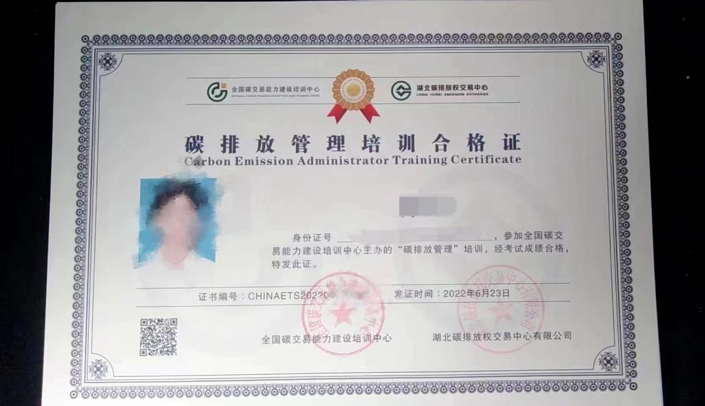 相關機構發放的碳排放管理培訓合格證。 (受訪者供圖)