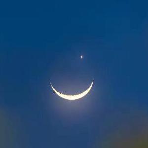 由于金星總在太陽附近出現(xiàn),這也意味著月亮來到這里與之相合或相伴時(shí)總是蛾眉月或殘?jiān)碌脑孪啵炼炔桓撸徒鹦呛芷ヅ洌€有“新月抱舊月”(在彎月牙的懷抱中,整個(gè)月面隱約可見)的現(xiàn)象。