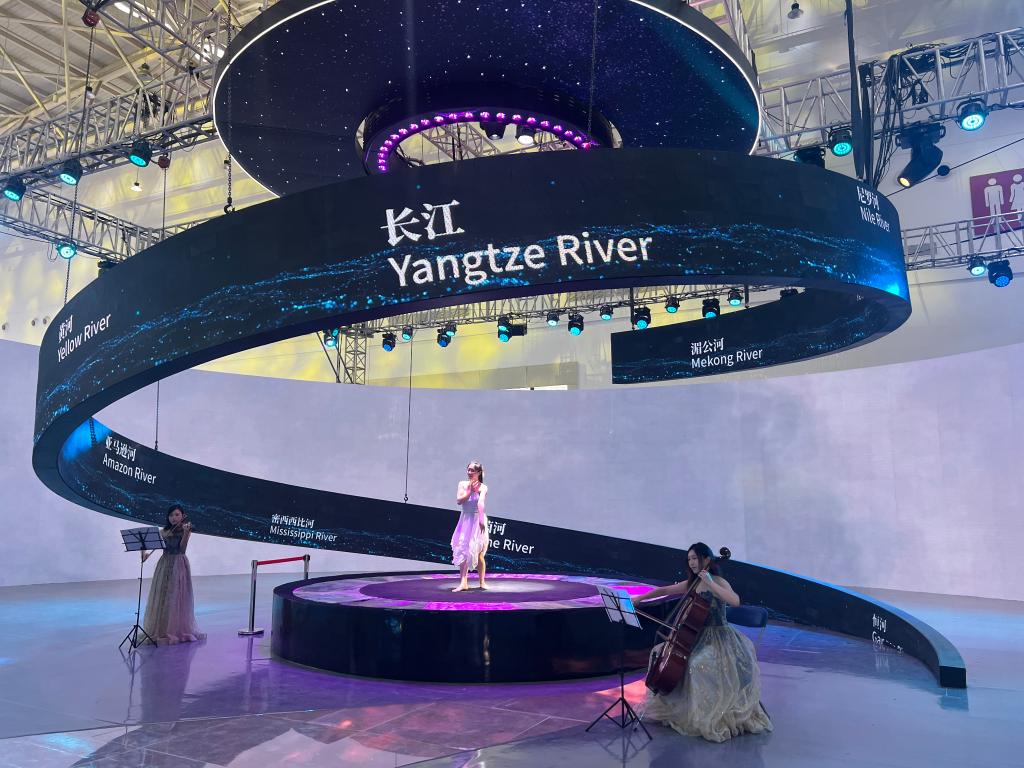 放眼全球,世界名曲與大江大河的有機融合令人心馳神往。在當天的展會上,數萬名觀眾踏著音樂的足跡沉浸式逛展。華中師范大學學生馬欣宇在觀賞“世界大河”館內的《黃河頌》表演時連聲贊嘆。“不同的大河風光在一首首江河之歌間緩緩流淌,仿佛世界文明就在我眼前一一展現。以后一定要去到這些地方,親自看一遍、聽一遍。”馬欣宇說。