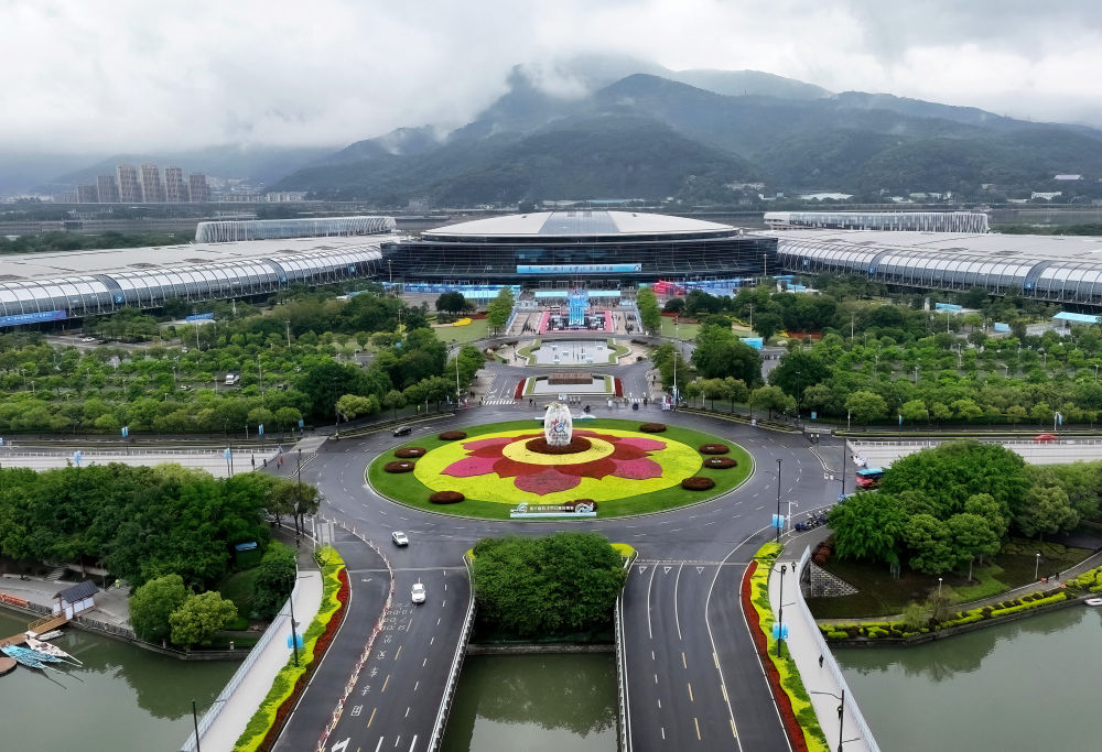 這是4月26日拍攝的第六屆數字中國建設峰會主辦地福州海峽國際會展中心外景(無人機照片)。新華社記者 魏培全 攝