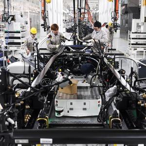 3月30日,工作人員在位于吉林長春的一汽解放J7智能工廠內進行整車裝配作業。新華社記者 許暢 攝