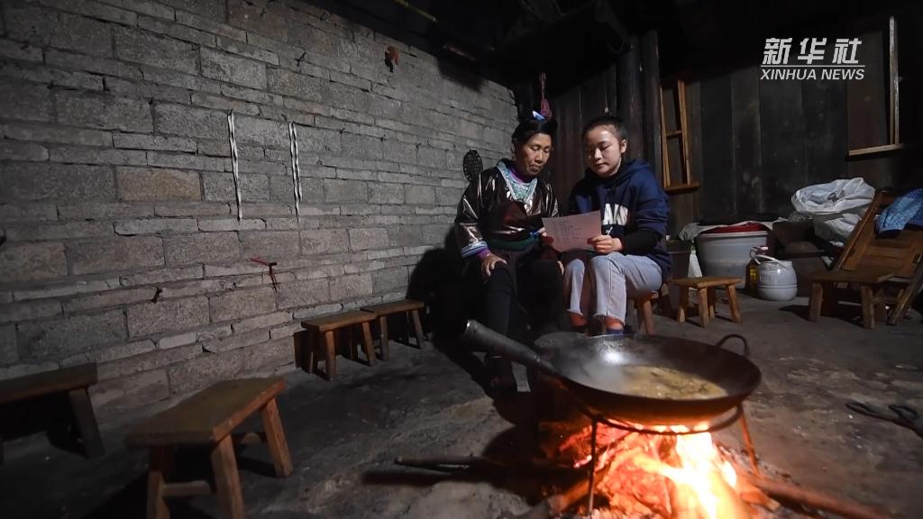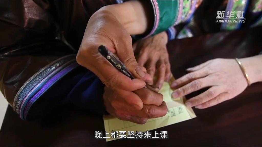 從地里干活回來,苗族婦女梁足英與媽媽換上最漂亮的衣服,趕到設在烏英屯聯合黨支部辦公樓的教室,學習文化知識。