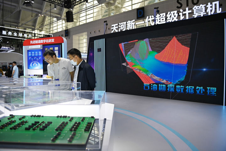 5月18日,觀眾在第七屆世界智能大會智能科技展上參觀國家超算天津中心展區(qū)。新華社記者 李然 攝