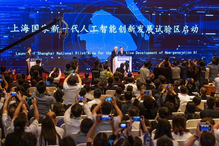 在上海舉行的2019浦江創(chuàng)新論壇全體大會上,科技部與上海市政府共同啟動上海國家新一代人工智能創(chuàng)新發(fā)展試驗(yàn)區(qū)建設(shè)(2019年5月25日攝)。新華社發(fā)