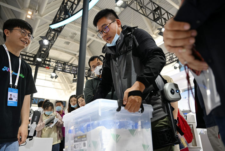 無人茶室里,機(jī)械臂端上鐵觀音等6種茶水供觀眾品嘗;外骨骼機(jī)器人既能彌補(bǔ)人的身體功能缺陷,又能延伸人的運(yùn)動能力;天津港智慧零碳碼頭模型,展示出碼頭從勞動密集型向科技密集型轉(zhuǎn)變的趨勢……展會上的創(chuàng)新應(yīng)用場景,令人向往。