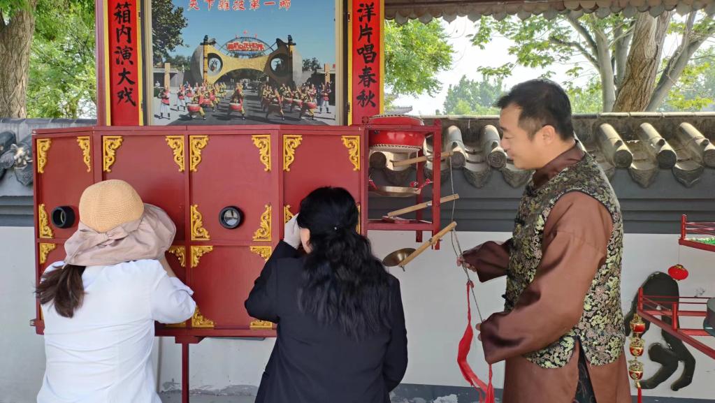 如今在吳橋,拉洋片不僅是老一輩人的回憶,也吸引著年輕人的目光。今年36歲的王峰是傳承拉洋片的年輕一代。