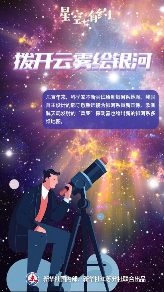 進入21世紀,各國科學家繼續嘗試構建更精確完整的銀河系“地圖”。2011年起,我國自主設計的郭守敬望遠鏡開始先導巡天,天文學家為銀河系重新畫像,發現它比原來認識的大了一倍。2013年,歐洲航天局發射“蓋亞”探測器,到2022年,其收集到的約20億顆恒星數據形成了新的銀河系多維地圖。