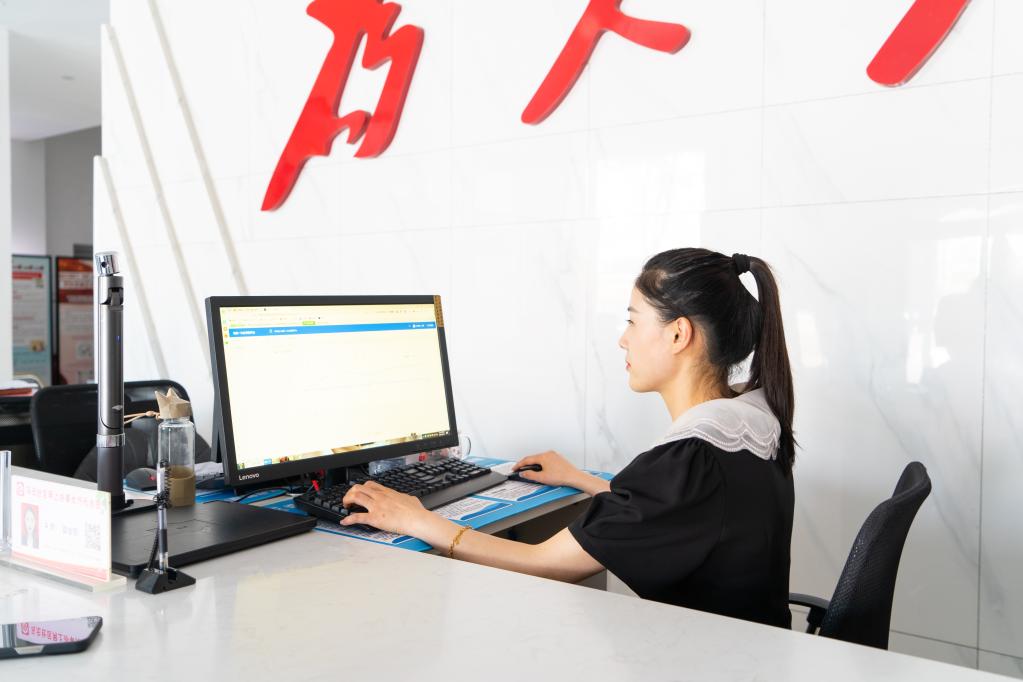 6月30日,亳州市譙城區(qū)花戲樓街道桑園社區(qū)的工作人員查看“無(wú)感互認(rèn)”平臺(tái)。 新華社記者趙金正 攝
