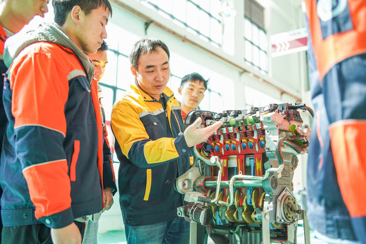 在貴州省畢節(jié)職業(yè)技術(shù)學(xué)院,“廣汽班”的學(xué)生在學(xué)習(xí)中(2021年11月18日攝)。新華社發(fā)(羅大富攝)