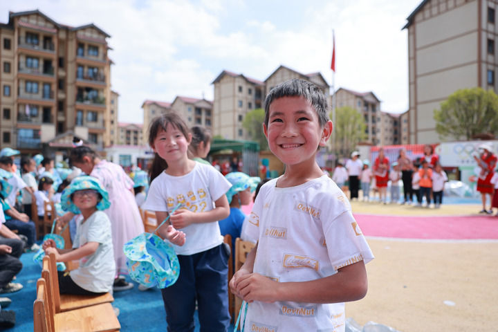 在貴州省單體規(guī)模最大的易地扶貧搬遷安置點(diǎn)畢節(jié)市七星關(guān)區(qū)柏楊林街道,七星關(guān)區(qū)第三幼兒園的孩子們在參加活動(dòng)(7月13日攝)。新華社記者 劉續(xù) 攝