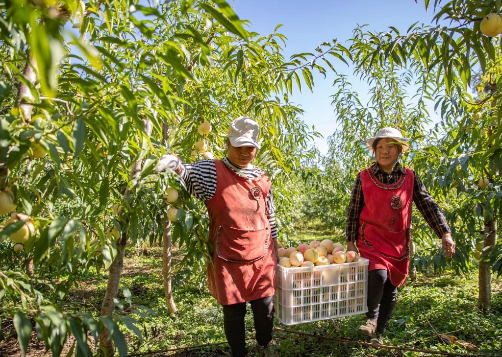 2022年10月13日,在重慶市巫溪縣峰靈鎮(zhèn)譚家村,村民在搬運(yùn)采摘的冬桃。新華社記者黃偉 攝
