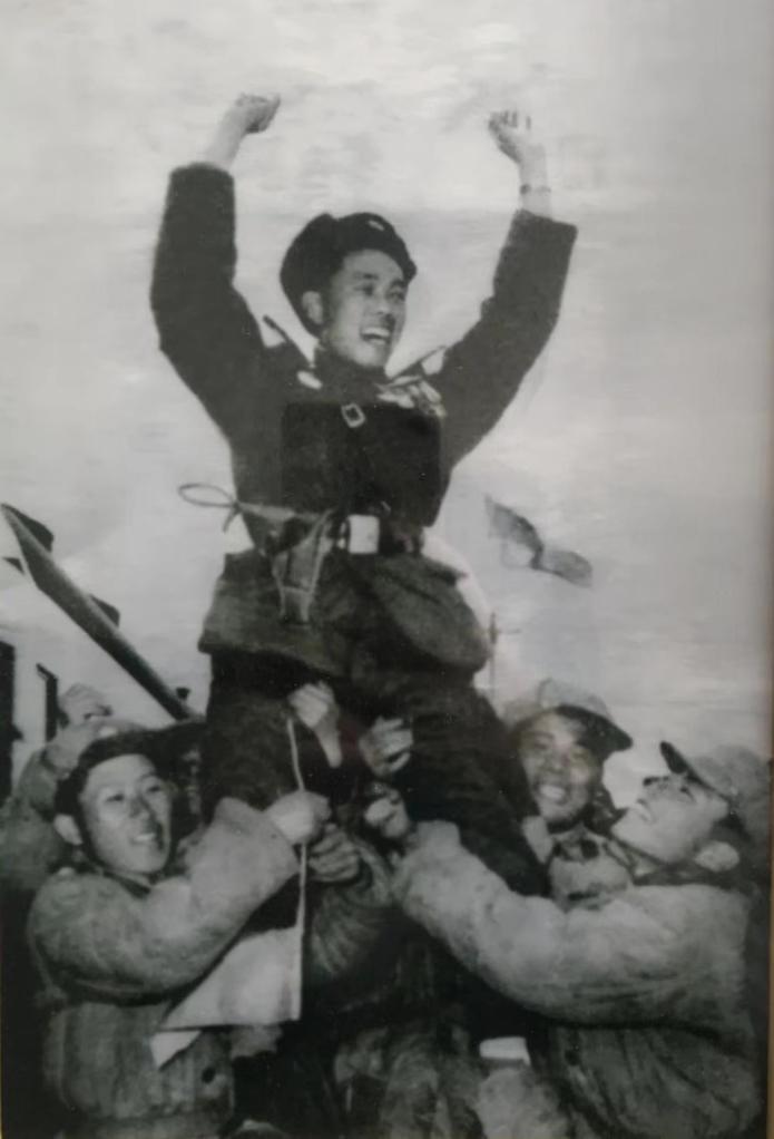 這是一張特別的照片:畫面中,前來送行的朝鮮軍民摩肩擦背,一名志愿軍戰士被高高抬起,他在空中握緊雙拳,揮舞雙臂,高聲吶喊。