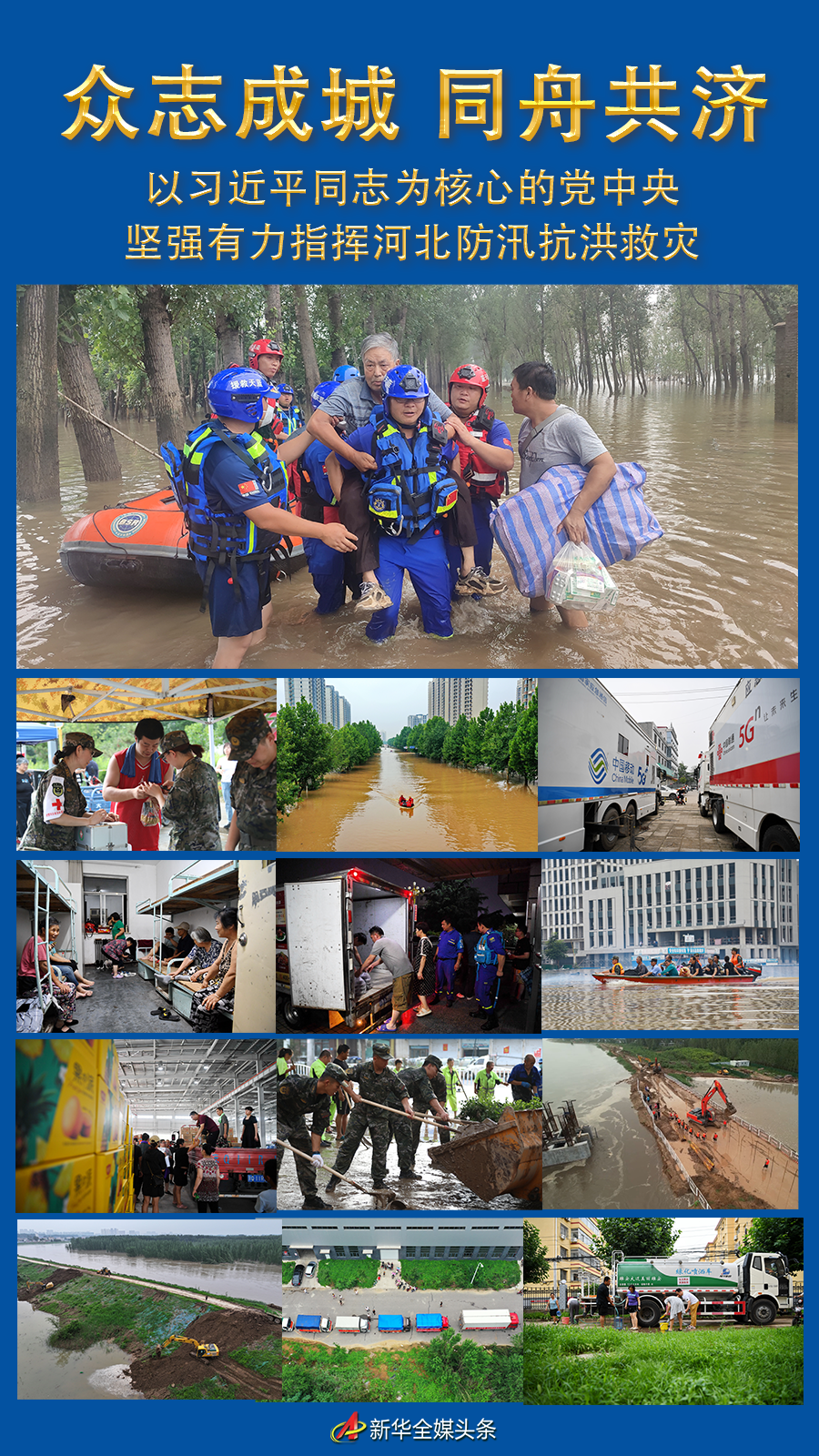 河北遭遇罕見洪澇災害,以習近平同志為核心的黨中央堅強領導、有力指揮,燕趙大地緊急動員、團結奮戰,全力以赴防汛抗洪救災。