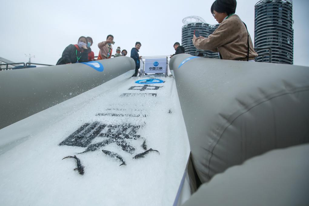 今年3月,10萬尾中華鱘在湖北省宜昌市胭脂園長江珍稀魚類放流點放歸長江。這是三峽集團聯合國內相關中華鱘保護機構,連續第68次開展流域化中華鱘放流。
