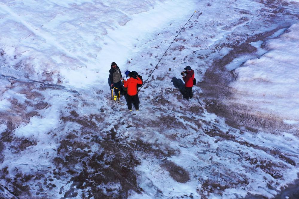 “這是我們第二次登上格拉丹東雪山主峰冰川,在去年測量的區域開展了4條測量線的雷達探測。”董士琦說,去年測量區域冰川平均厚度約12米,此次探測結果可用來比較冰川的厚薄變化,為計算冰儲量積累數據。